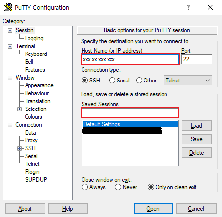 1. putty Configuration open