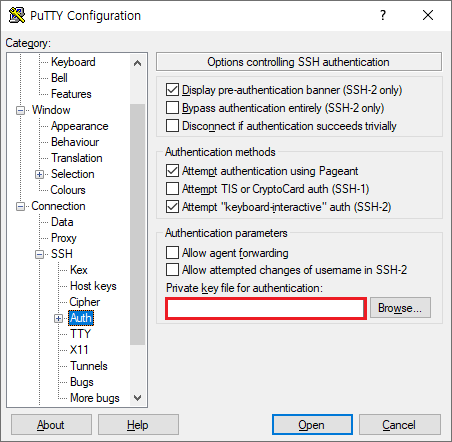 : 내 경우 .ppk 파일을 Private Authentication으로 받았음