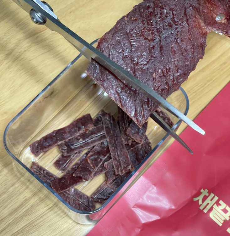 다른 육포들에 비해 기름기 없는 고깃덩어리 말린 느낌?