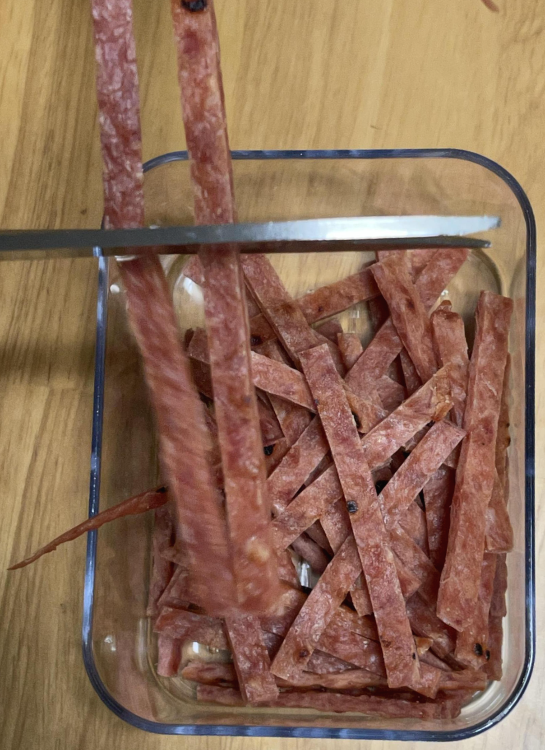 롱스틱 직화육포는 자르지 않아도 끊어먹기 좋게 생겼다.