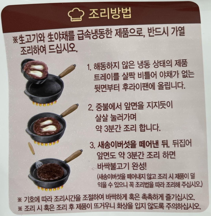 제품 그대로 조리했었다.