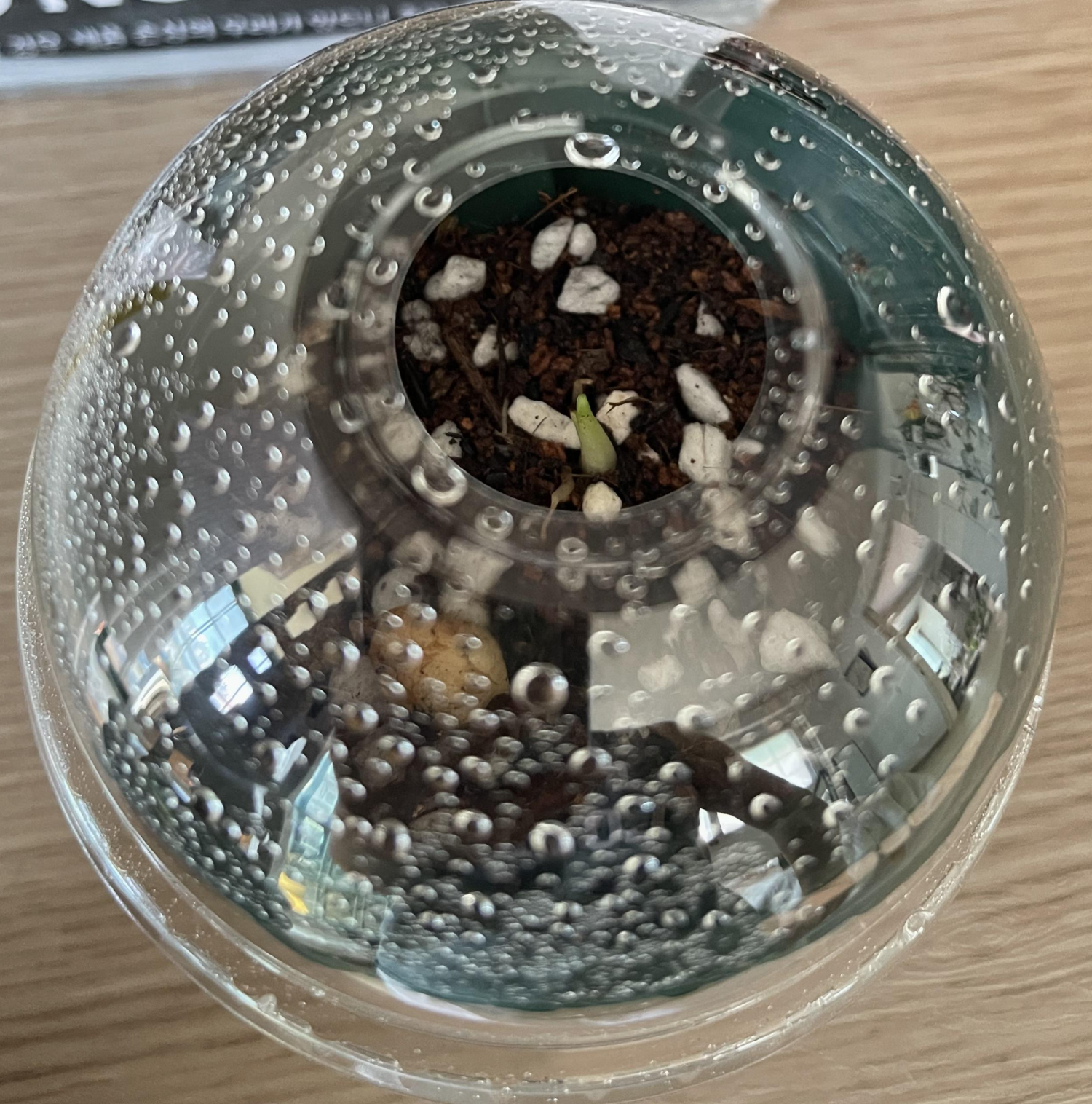 새싹분은 습도 유지를 위해 컵뚜껑으로 관리해주기로 한다.