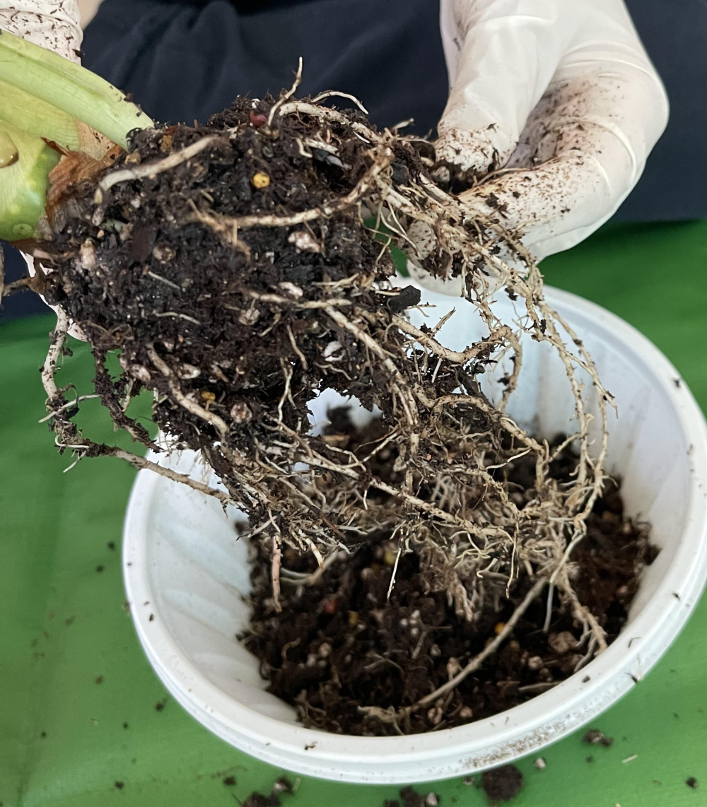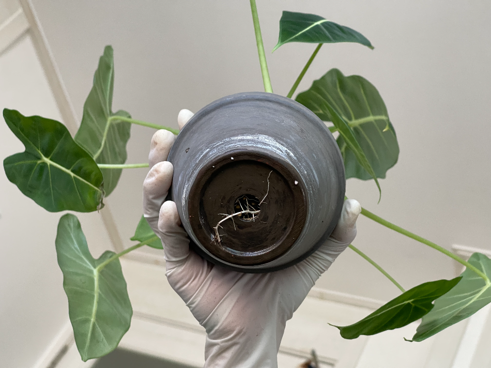 아래를 살펴보니 뿌리가 터져나오려고 한다.