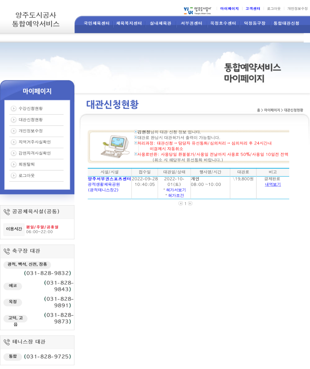 결제 후 마이페이지 > 대관신청현황에서 확인 가능