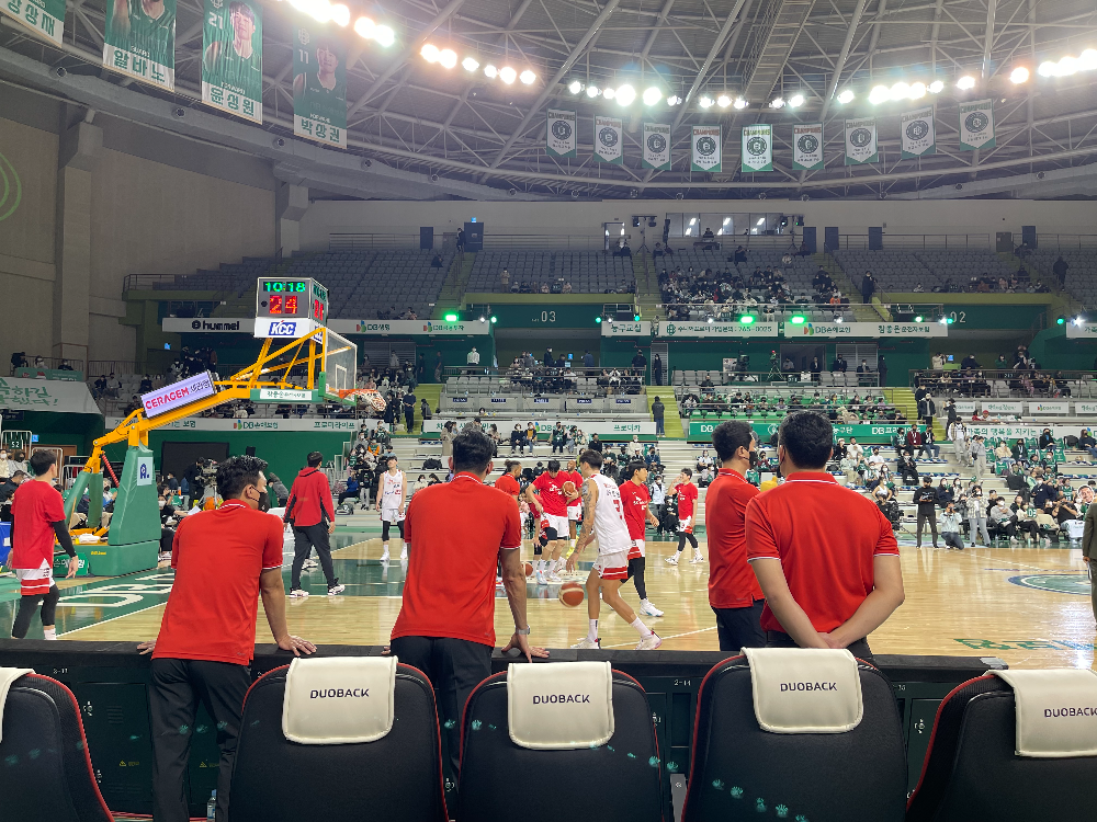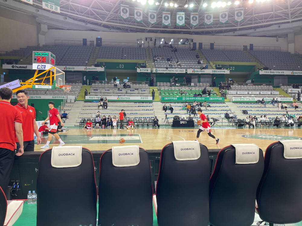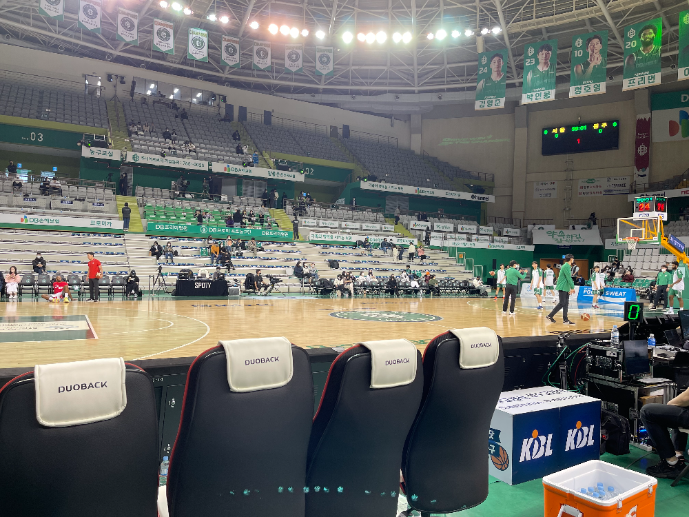 경기중 코치진들이 일어설 일이 빈번해 경기 모습이 가릴때가 있다.