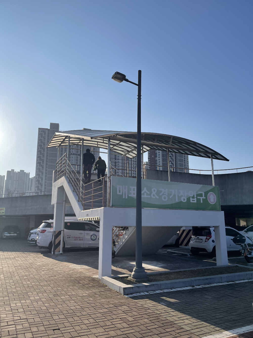 주차장 중간에 경기장으로 올라갈 수 있는 계단이 있다.