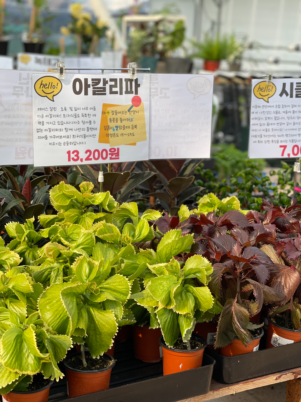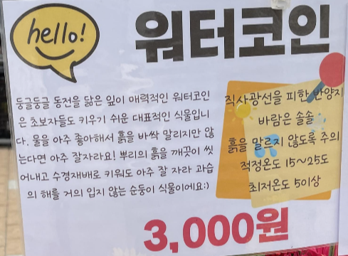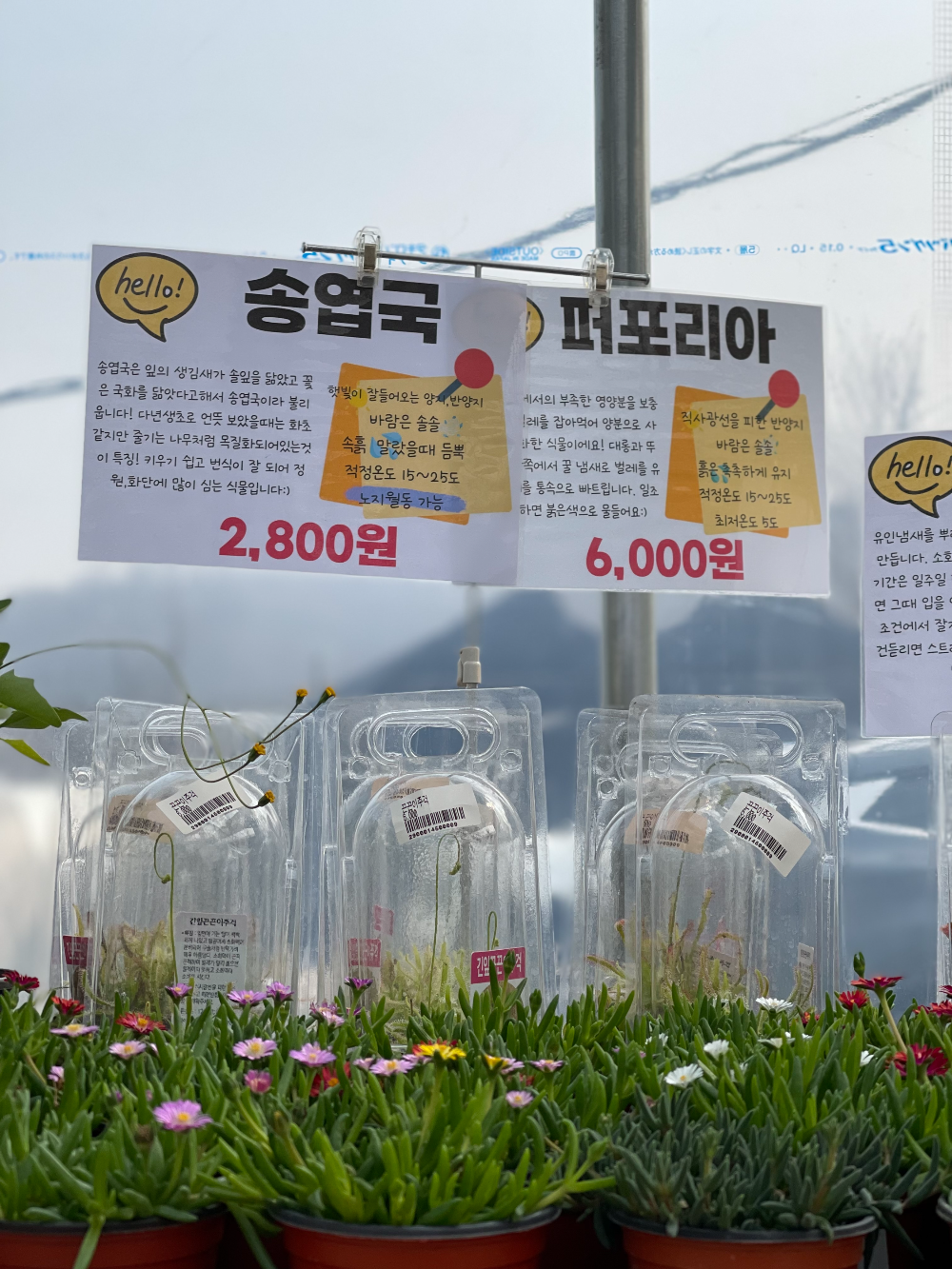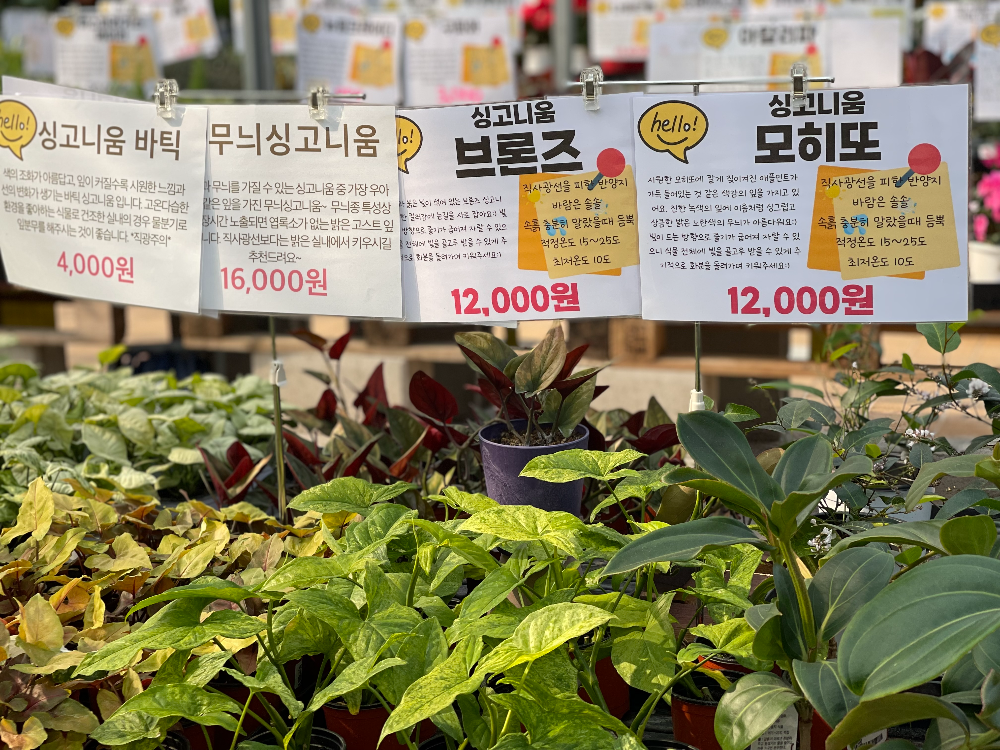 일단 입구 들어가자마자 보이는 식물 이름과 설명 그리고 가격.