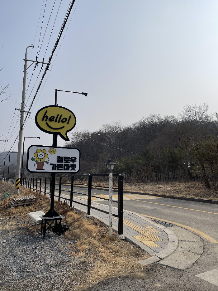 예전에 더그린가든센터 가는 길에 말풍선에 쓰인 hello를 보며