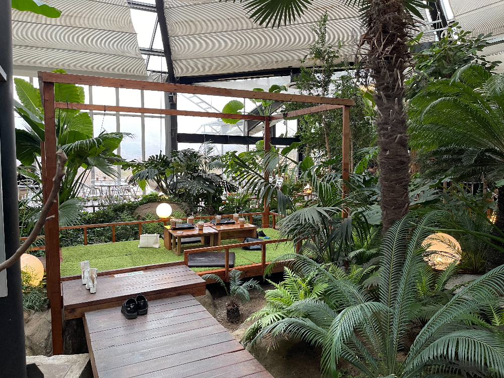 식물원에 커피 마실 수 있는 좌석들을