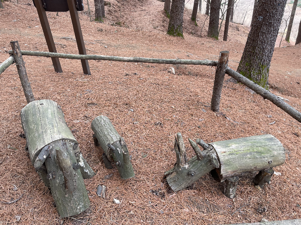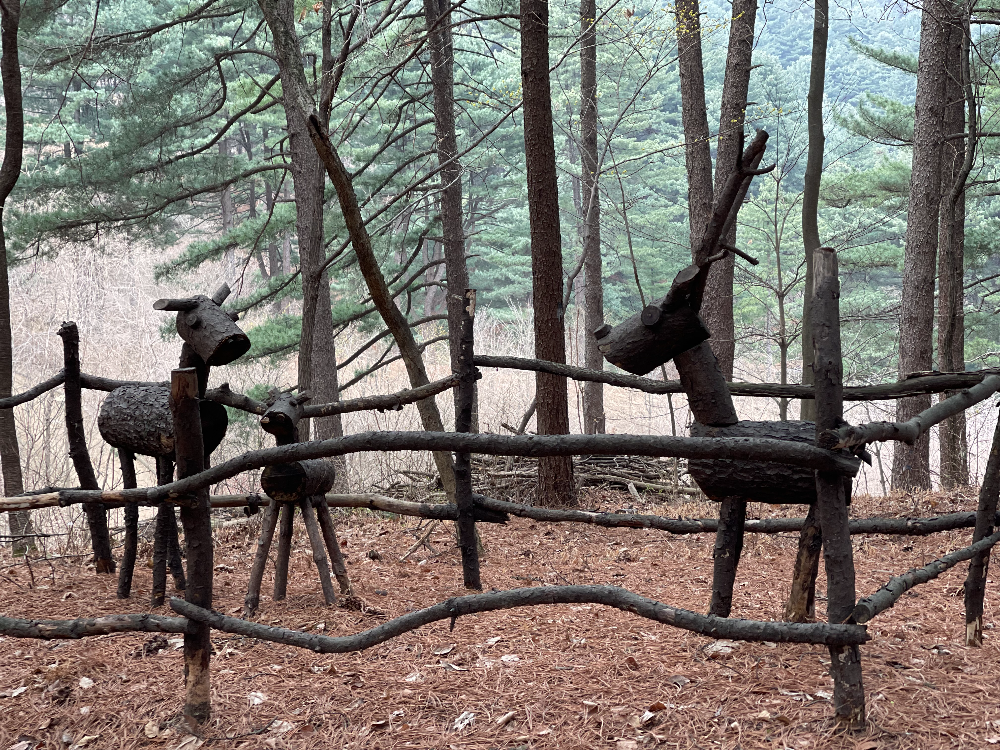 유아숲체험원 근처에 동물 가족 조각이 많았다.
