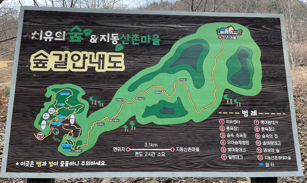 시간적 여유가 있다면 좀 더 걸을 수 있는 근처 마을로 통하는 숲길이 있는 것 같다.