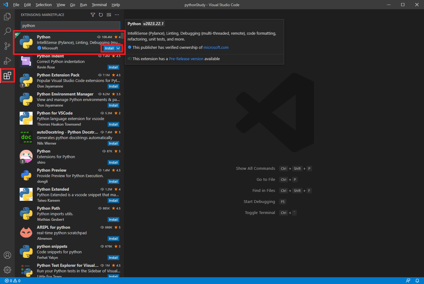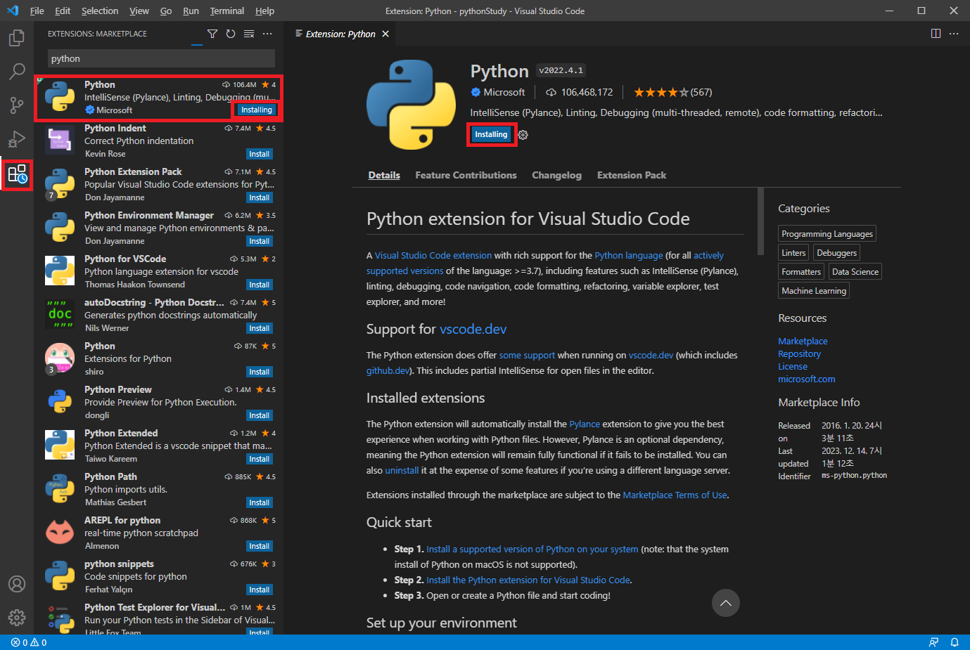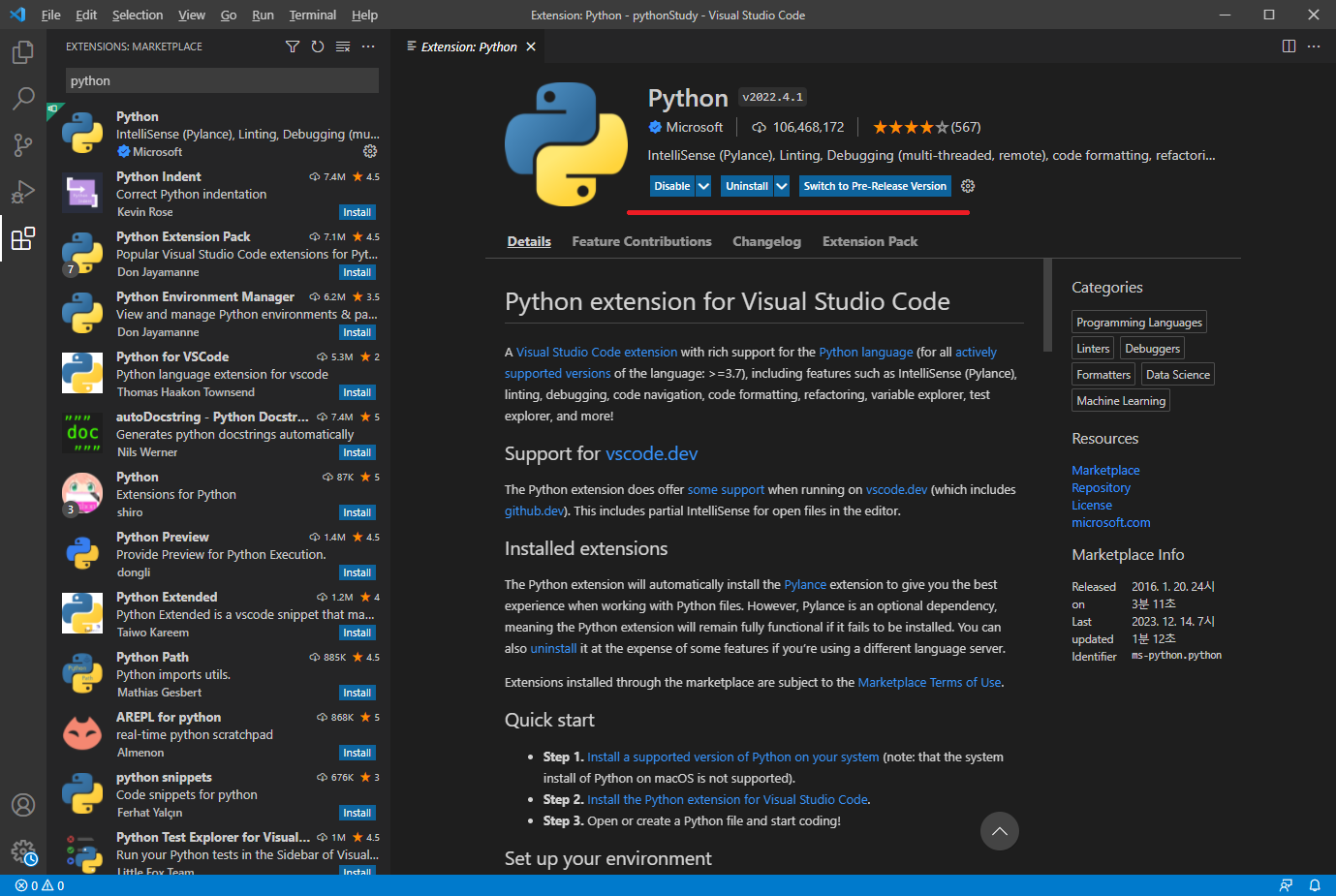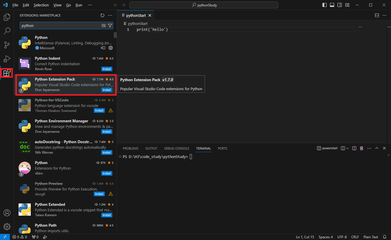 3. python 확장기능 추가