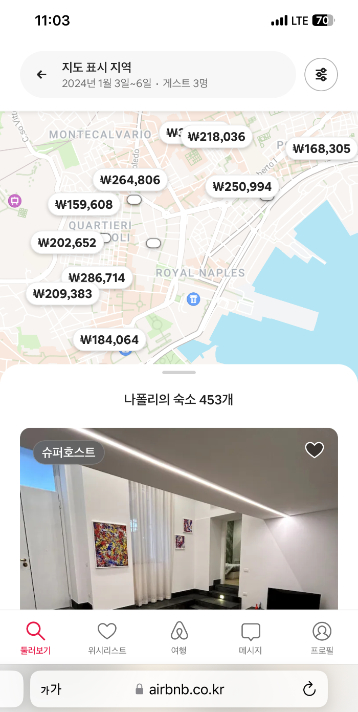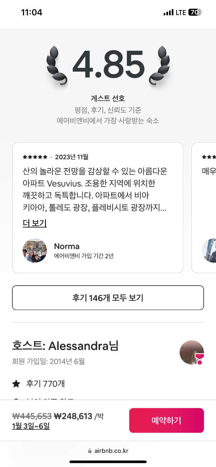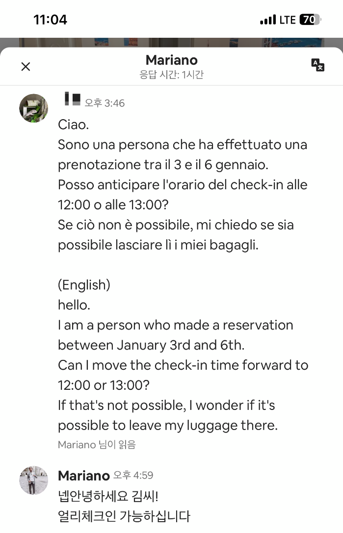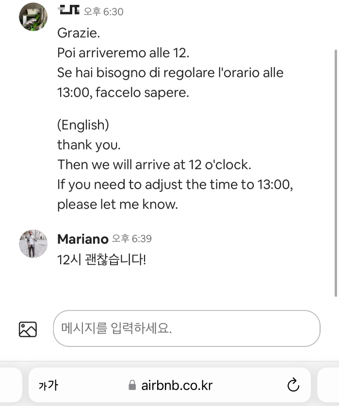 아래는 이번에 예약한 나폴리 숙소 호스트와의 대화 내용이다.