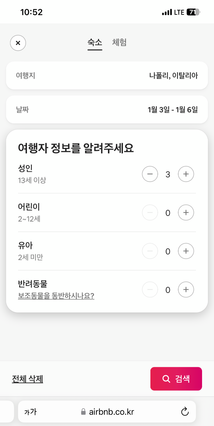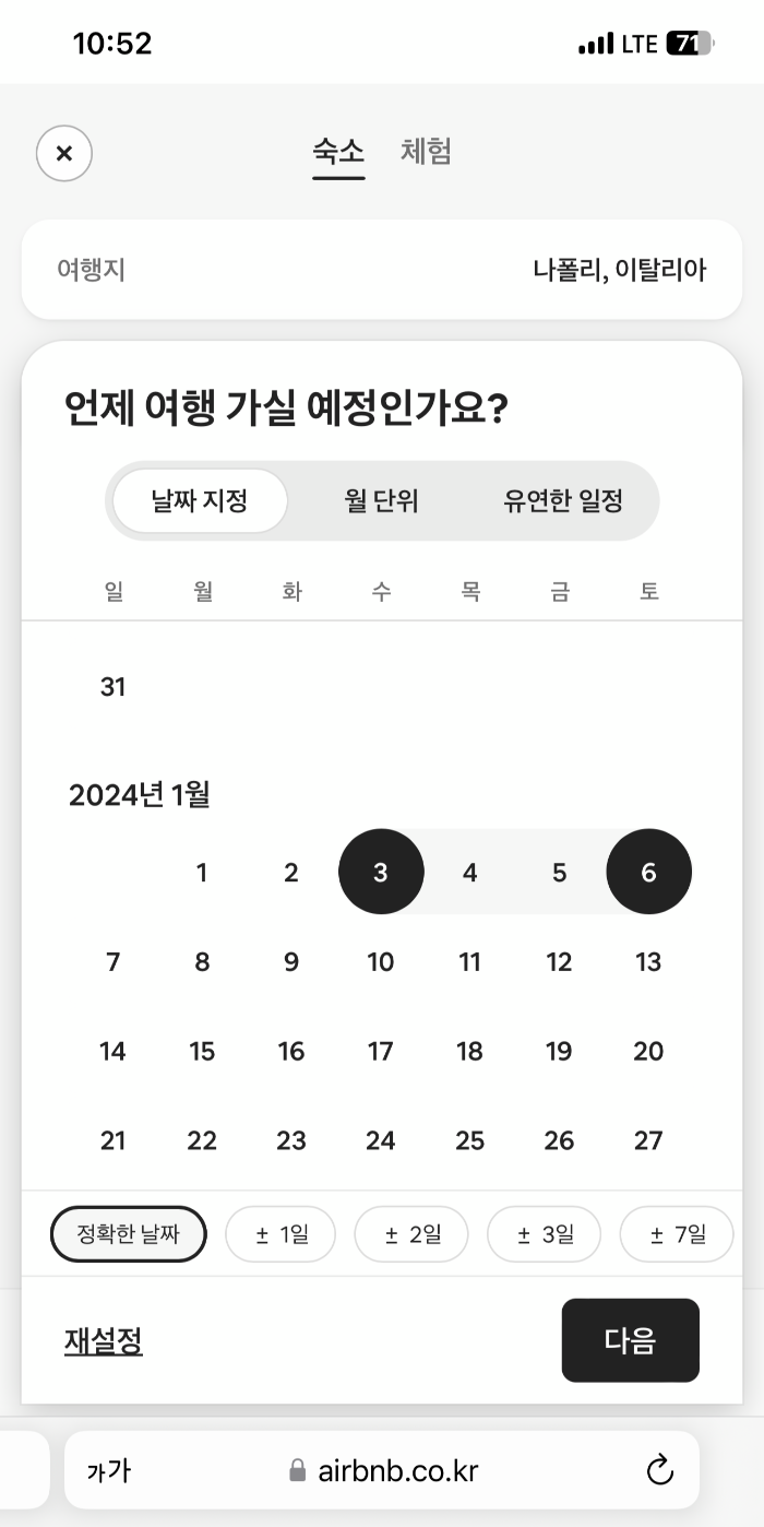 그 숙소는 저 날짜로 검색하면 검색이 안되기에 다른 숙소를 예시로 들었다.