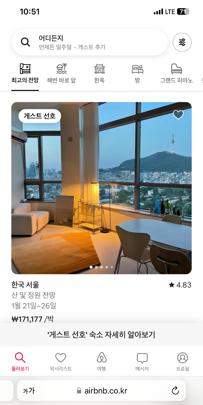 이번에도 부킹닷컴과 에어비엔비 두군데를 찾아보다가