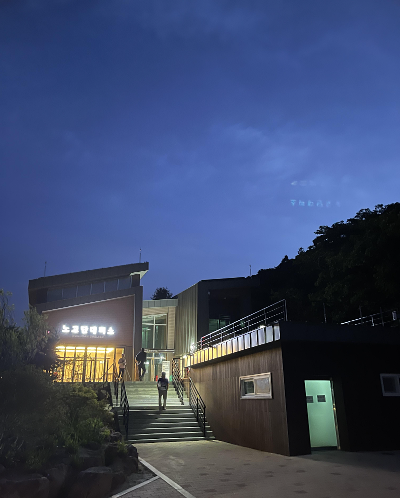 길지 않은 돌계단 길 끝에 노고단대피소가 있고 그 맞은편에 화장실이 있다.