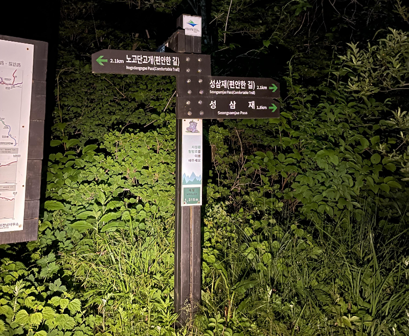 여기(노고단대피소)서도 노고단고개(편안한 길)과 노고단고개길로 나뉜다.