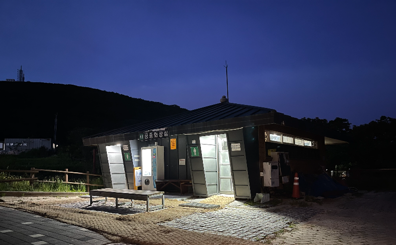 새벽이지만 무인 편의점인 이마트 편의점이 있어서 매우 밝다.