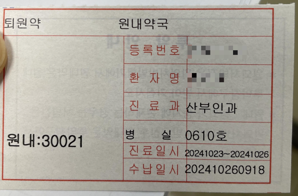 이때 7일치 진통제 처방해주는데 수납후 영수증 우측 아래에 퇴원약 부분을 뜯어서 제출하면 된다.