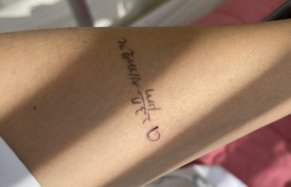 일단 아래 프린트물을 들고 병동으로 이동하면 테이프로 붙여둔 팔찌는 내 손목에 감아주신다.