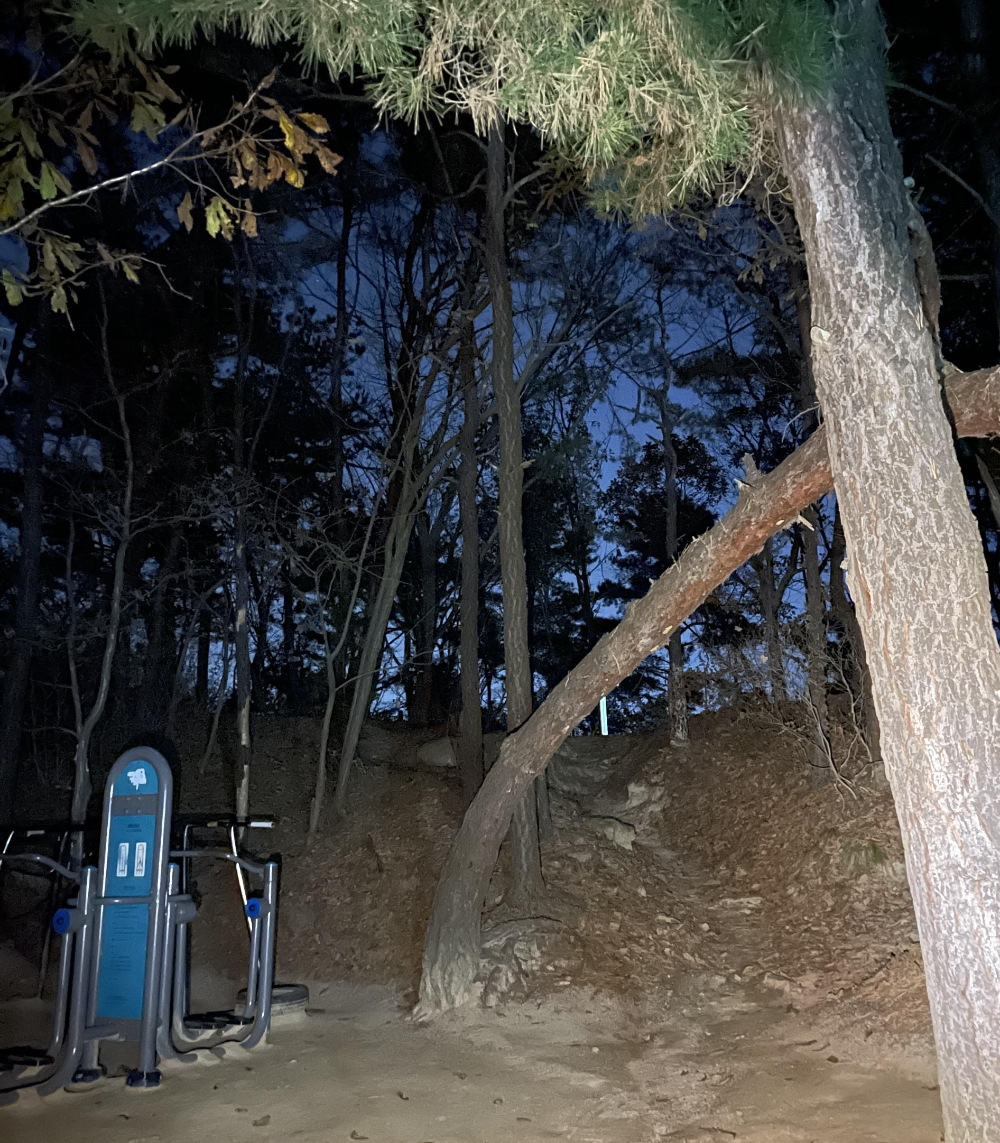 운동기구 모아둔 곳을 좌측에 두고 직진하면 된다.