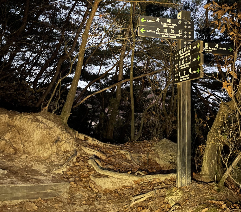 배드민턴장과 이 이정표 있는데서 시간이 지체되어