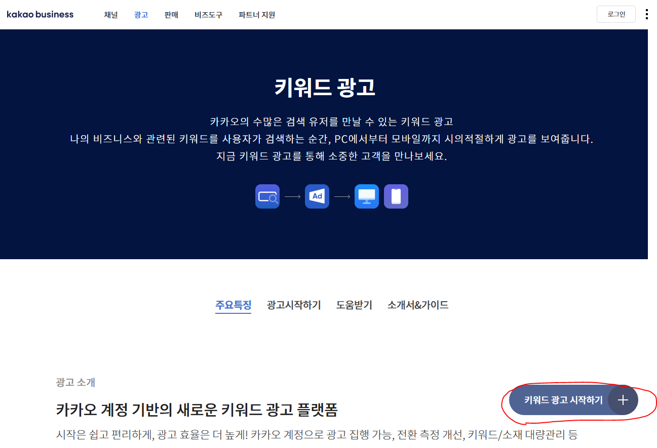 하늘색 배경의 '광고플랫폼' 을 클릭하여 이동한다.