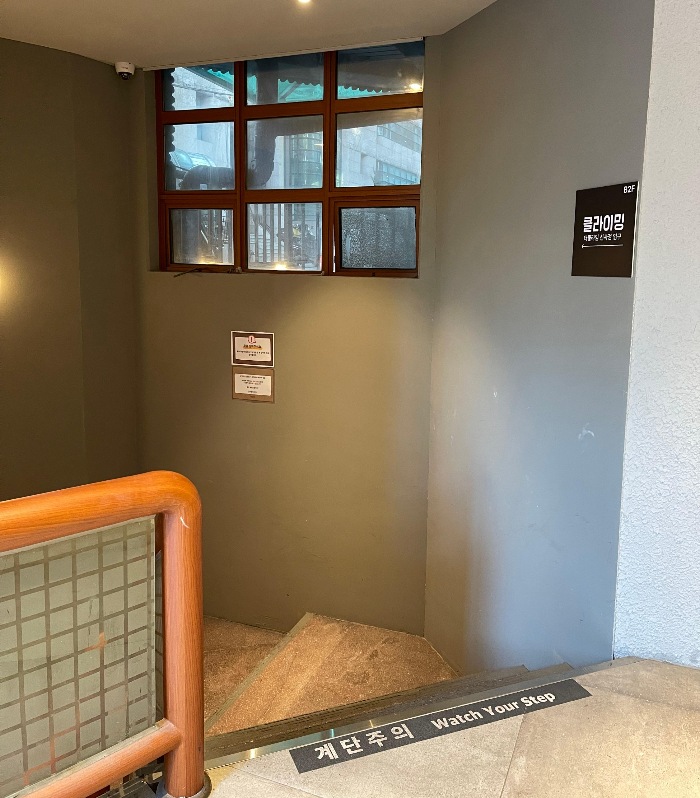 입구 들어서면 좌측으로 내려가는 계단이 보인다.