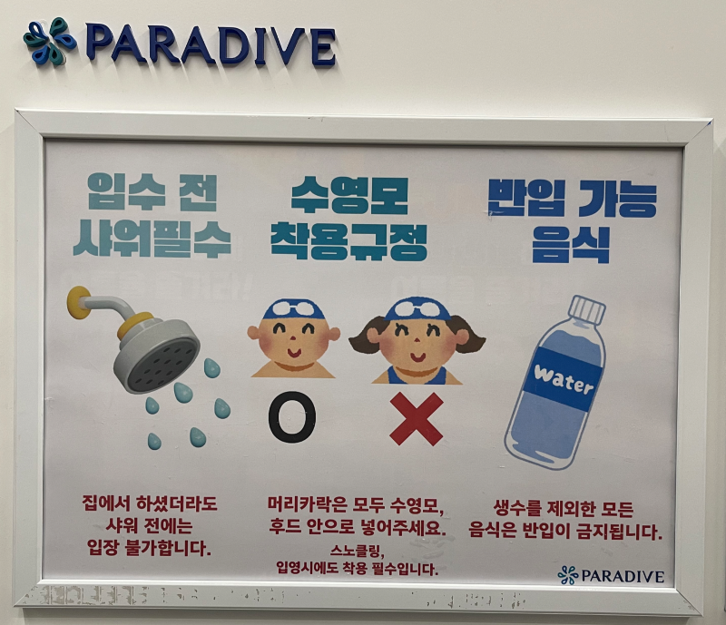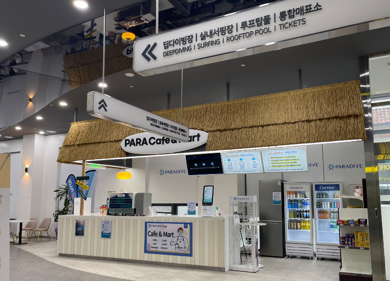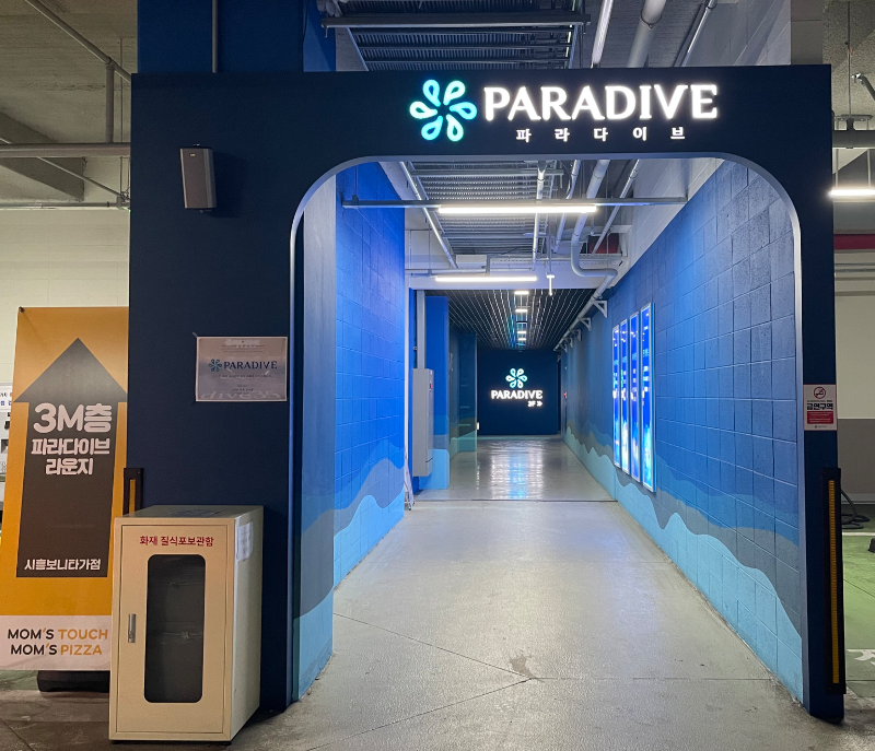 우린 식자재마트쪽에 있는 파라다이브 입구로 들어가 엘리베이터를 타고 올라갔다.