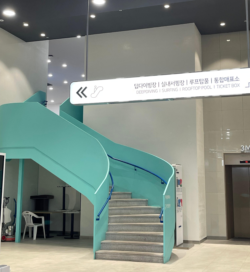 식자재마트쪽 파라다이브 입구에서 이용한 엘리베이터는 3층에 내려서 계단을 한번 더 올라가야 프론트가 나온다.