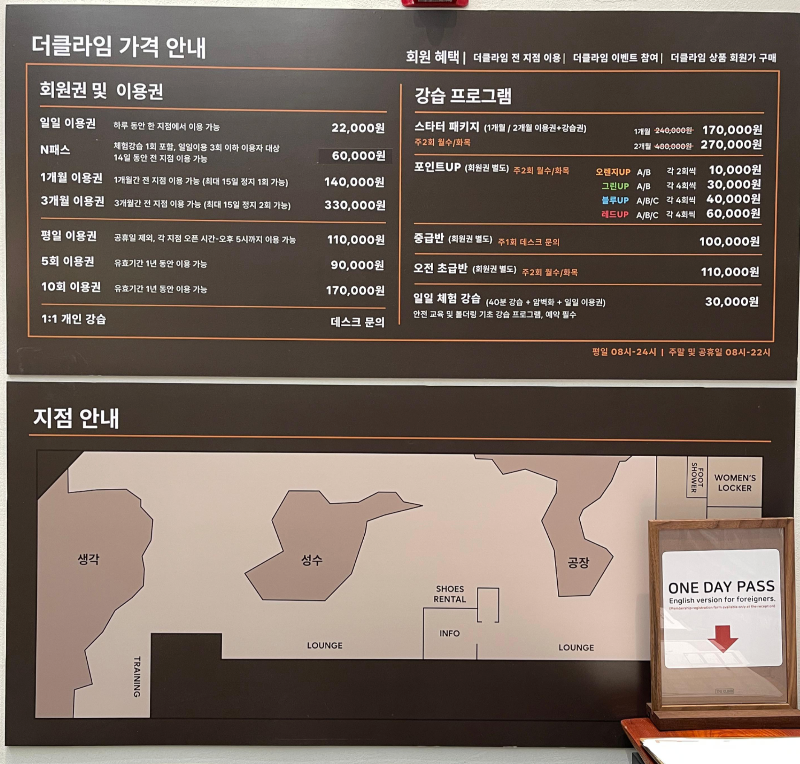 가격은 다른 지점들과 동일하게 안내되어 있다.