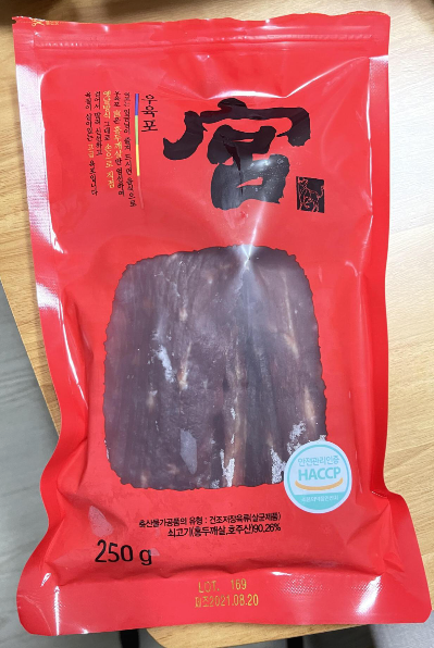 코스트코에서 산 '궁' 이라는 한자가 붙은 육포다.
