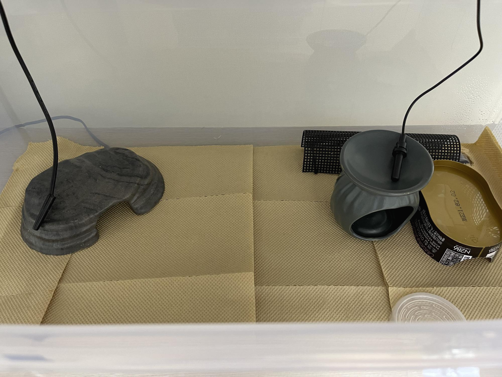 . 꼬리가 들린 상태로는 건식은신처가 낮아서 불편했는지 습식은신처에서 자절한 것으로 예상됨.