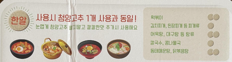 거의 대부분 백년육수 사용할 때 청양고추를 넣거나 고춧가루를 추가했었다.