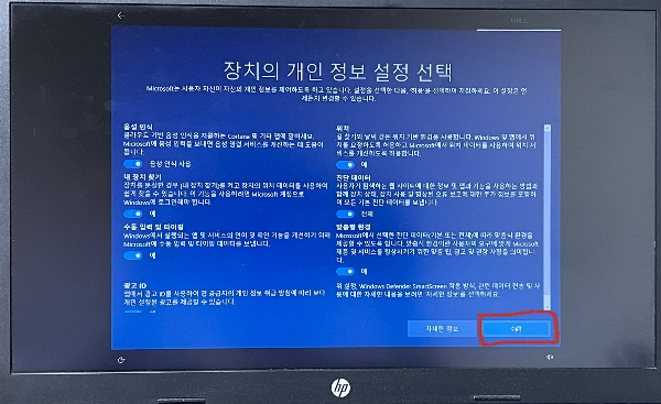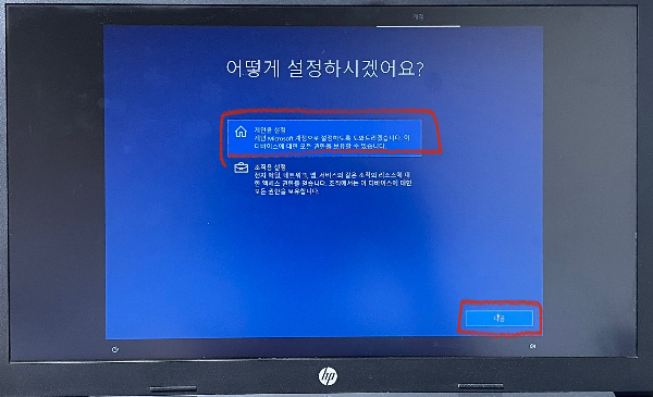 [ 개인용 설정 ] > [ 다음 ]