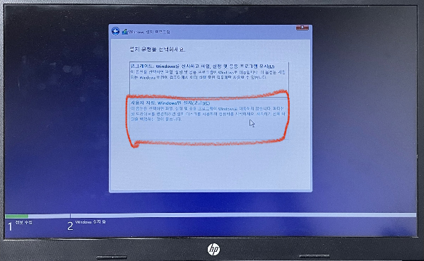 [ 사용자 지정 : Windows만 설치(고급) ]