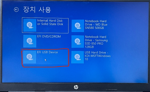 [ 장치 사용 ] > [ EFI USB Device ]