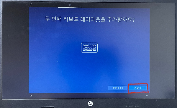 두 번째 키보드 레이아웃은 [ 건너뛰기 ] 로 한다.