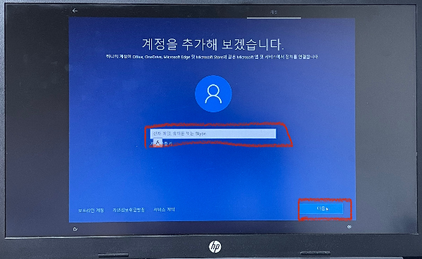 윈도우 계정 로그인과 업데이트 진행을 위해 네트워크 연결을 하자.