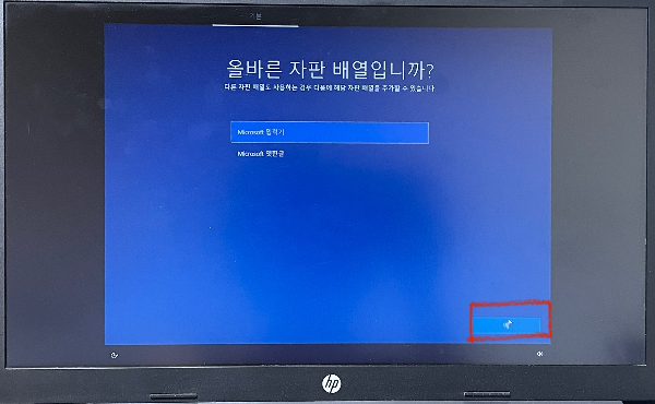 Microsoft 입력기 그대로 선택했다.